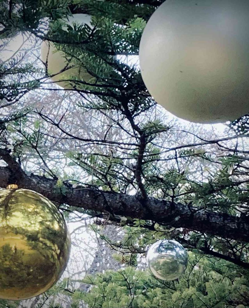 わ、ほんとのモミの木に飾り付けなさるんですね。