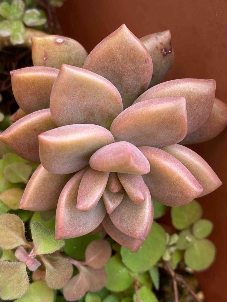 数は少ないけど、うちでは個性的な色の子です。今植えているプランターは、ブロンズ姫にとってあまり居心地よくないのかも…来春、葉挿しで増やしてもりもりさせたいです。