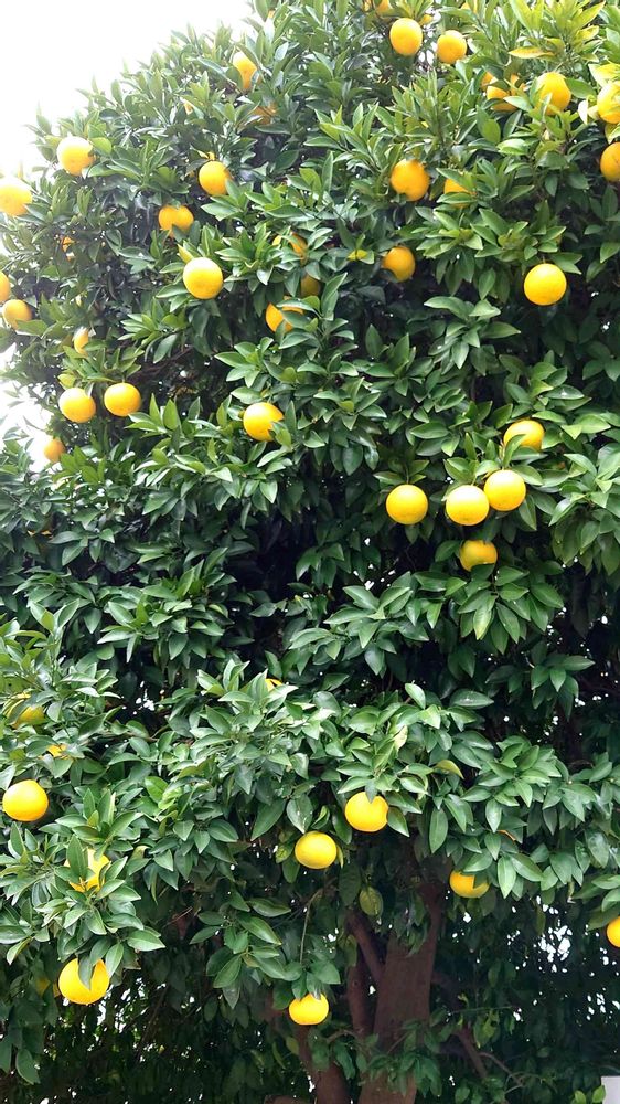近所の会社の駐車場に夏みかんみたいなものがたわわに実っています🍊 ゆずではなさそう。どーするんだろ⁉🤔
