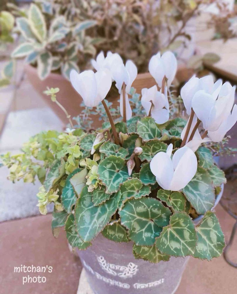 みっちゃん*☻*さんのガーデンシクラメン,バコパ ライムバリエガータ,白い花の投稿画像