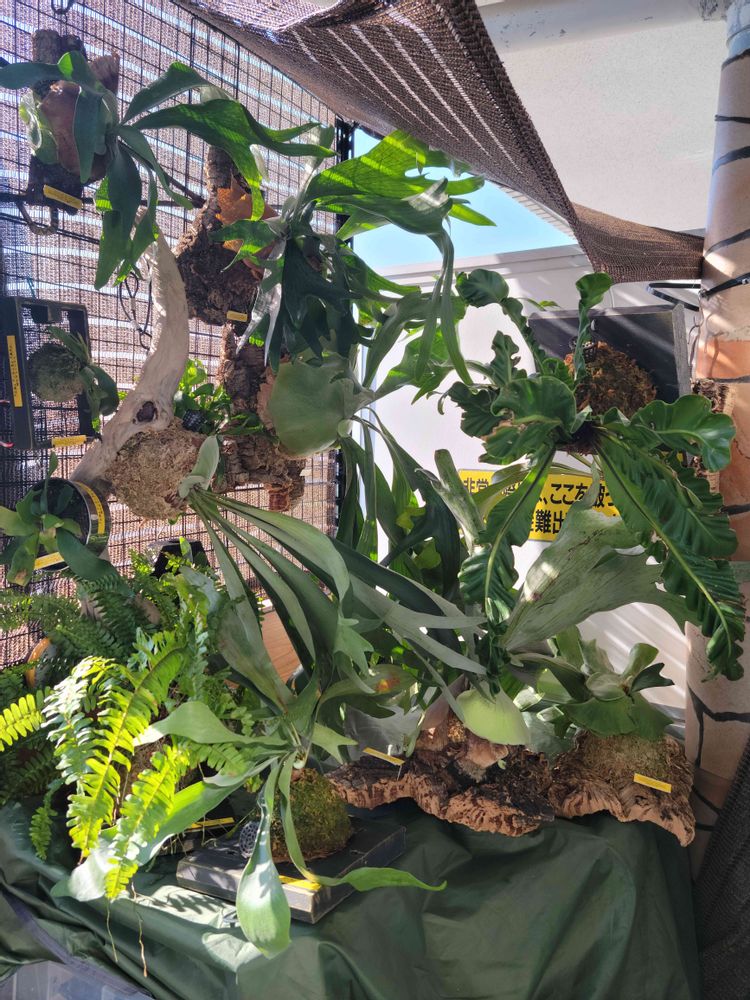 #日光浴#ベランダ#ビカクシダ#風通し#日当たり#お散歩#陰干し#板付#コルク付け#遮光ネット#流木#流木付け