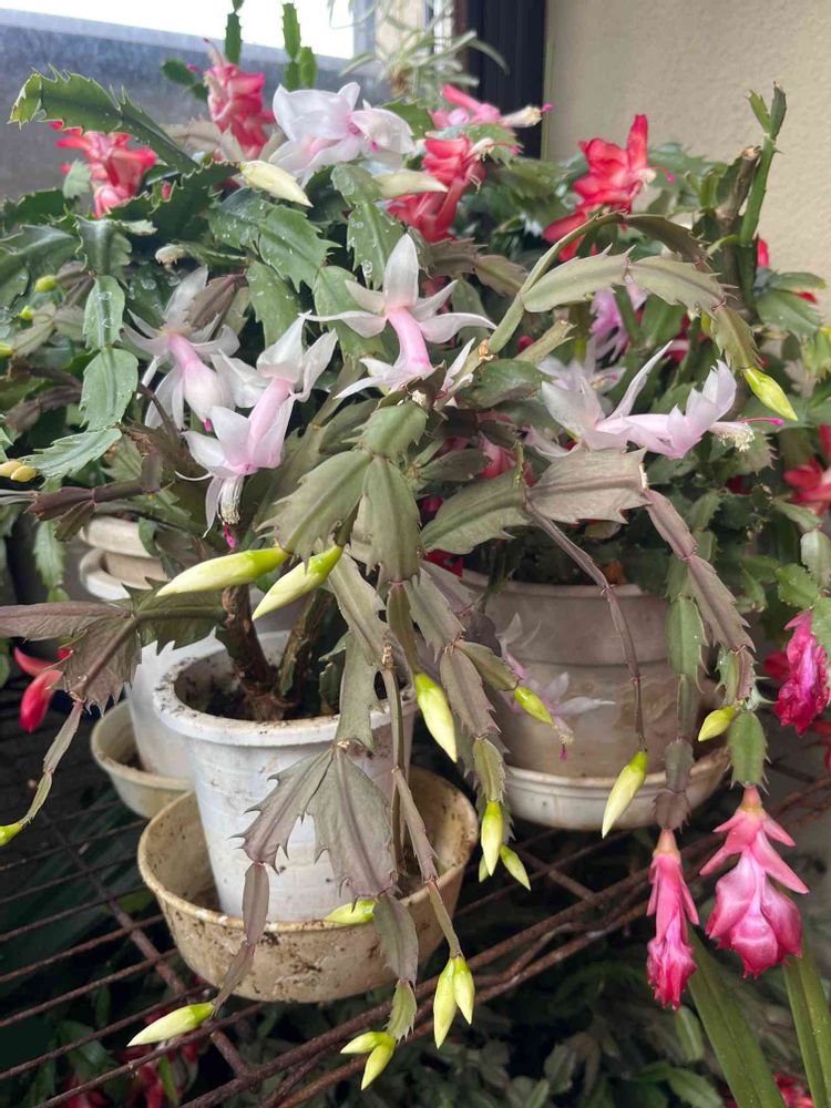 シャコバサボテンの白の蕾が少しずつ大きくなってきました😊💕