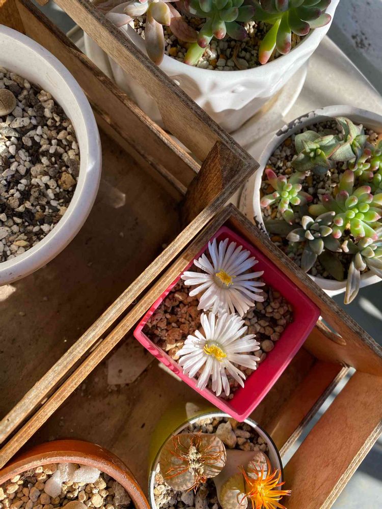 うちのリトープスさんは白い花でした。今日テレビでリトープスやってました📺️たくさん集めたくなります🤭🎶