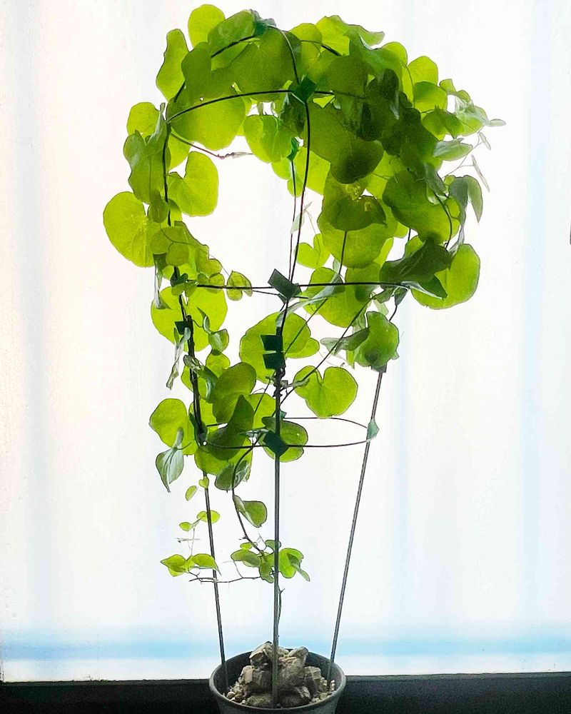 ツルが巻きつけるように、今年は早めに自作で支柱を用意しました😅
