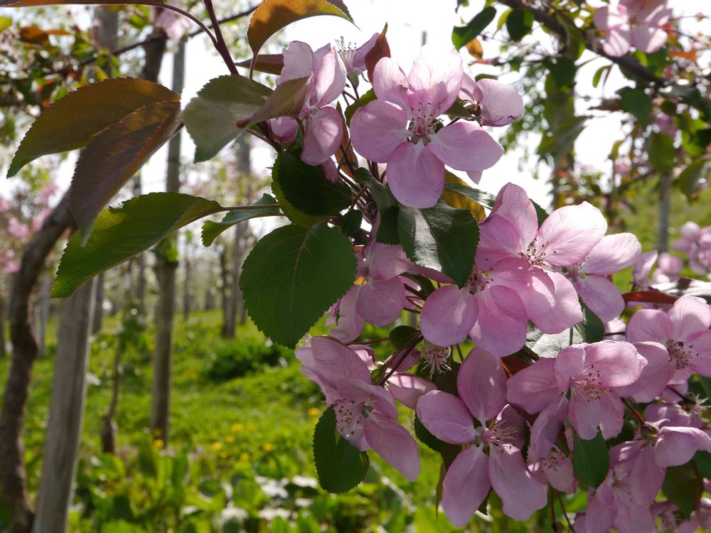 りんご〜の花〜び〜らが〜🎵って、歌は知っているけれど、イメージでは白だと思っていました。なんか、意外な花色ですが美しくてビックリ‼️