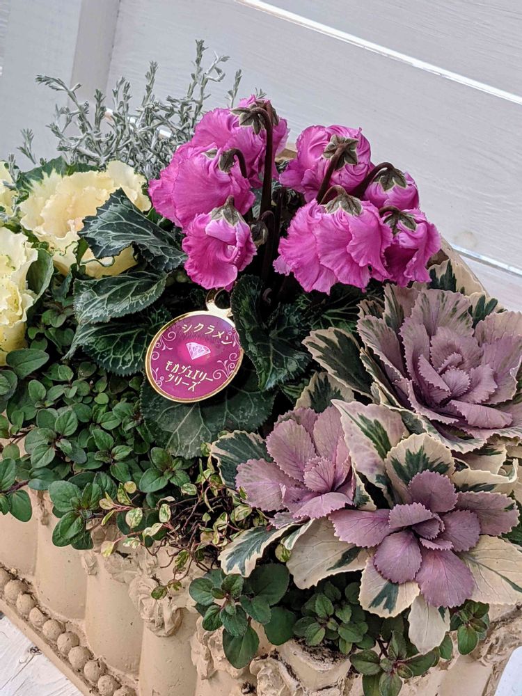 ある苗で作ったとは思えないです😍ステキ💗手前の葉牡丹の色、いいですね〜💕