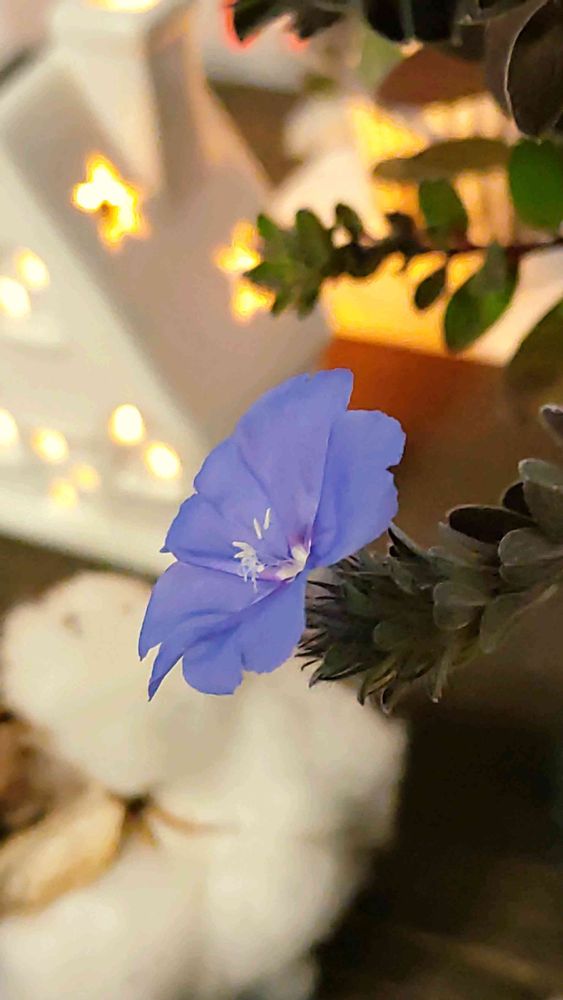 冬の花のイメージではないけど銅色の葉っぱやポツリと咲く青色で長く愉しませてくれてます。