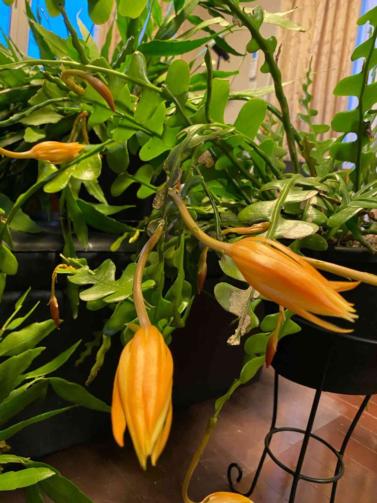 フィッシュボーン・カクタスは基本姫月下美人と同じような習性みたいですが、お花はガクの部分がオレンジ色で、香りも柑橘系🍊を思わせます。