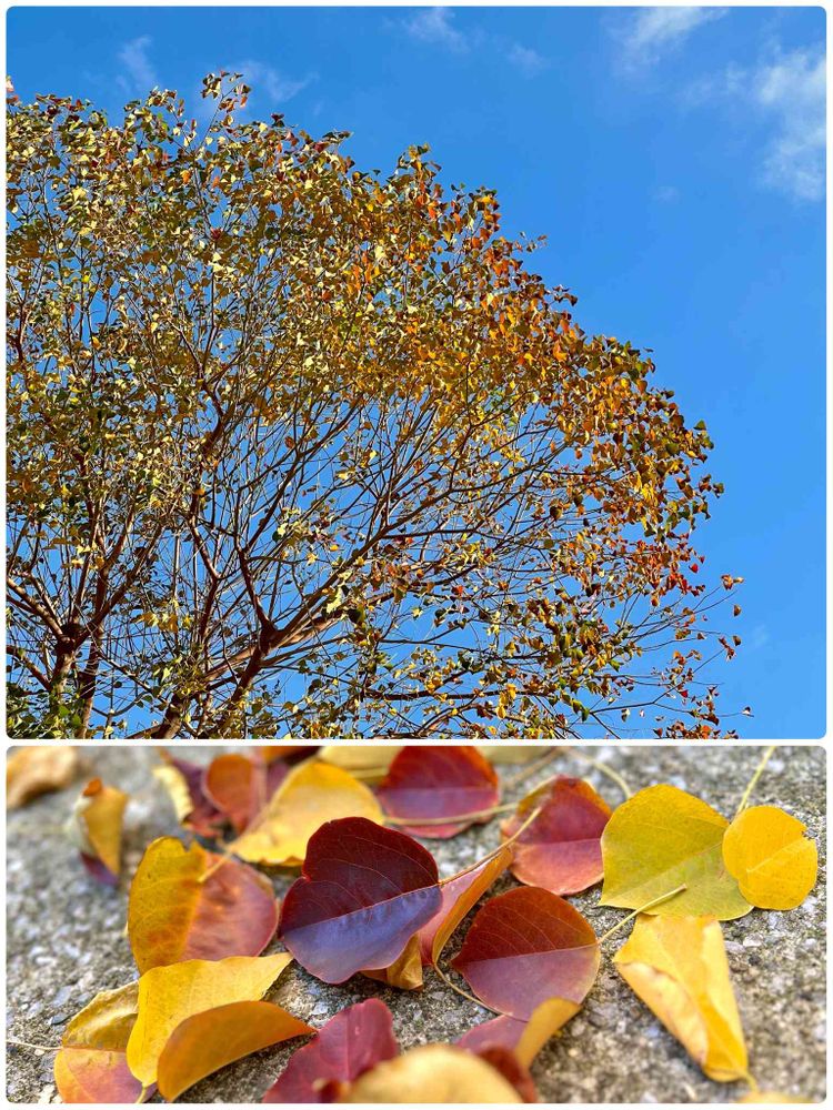 木は高くて葉っぱの一枚一枚がよく分からないけど、少しの風でもはらはらと落ちてくる葉っぱがいい色🥰🥰🥰