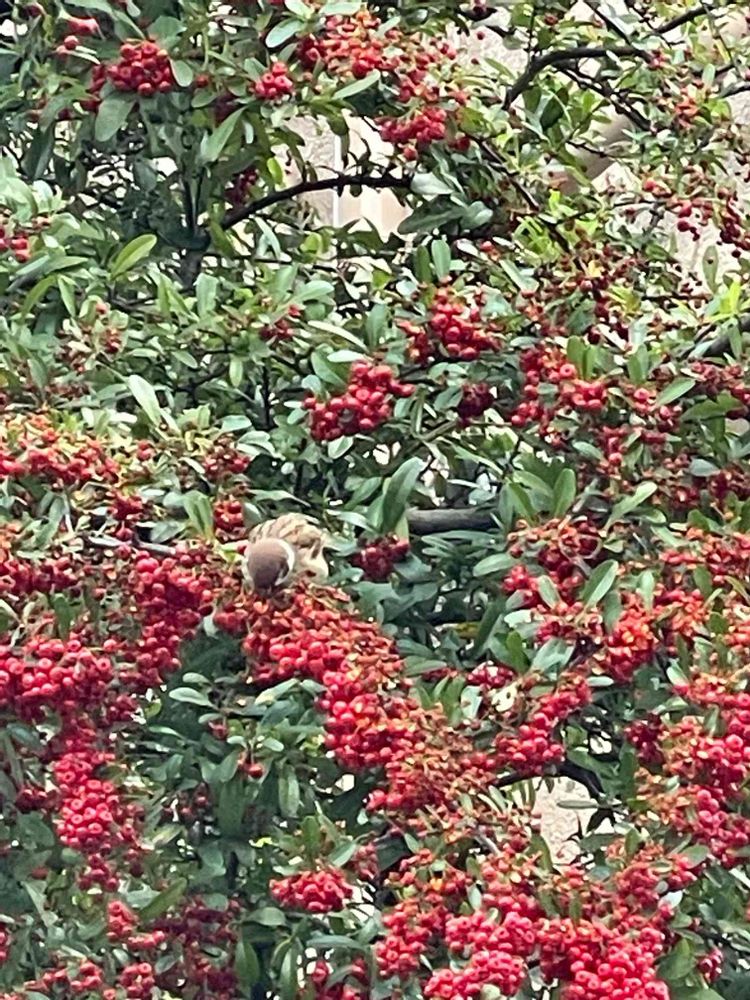 側で撮ってると、プチプチパチパチ賑やかです。ピラカンサは数の子系食感だったんですね😁