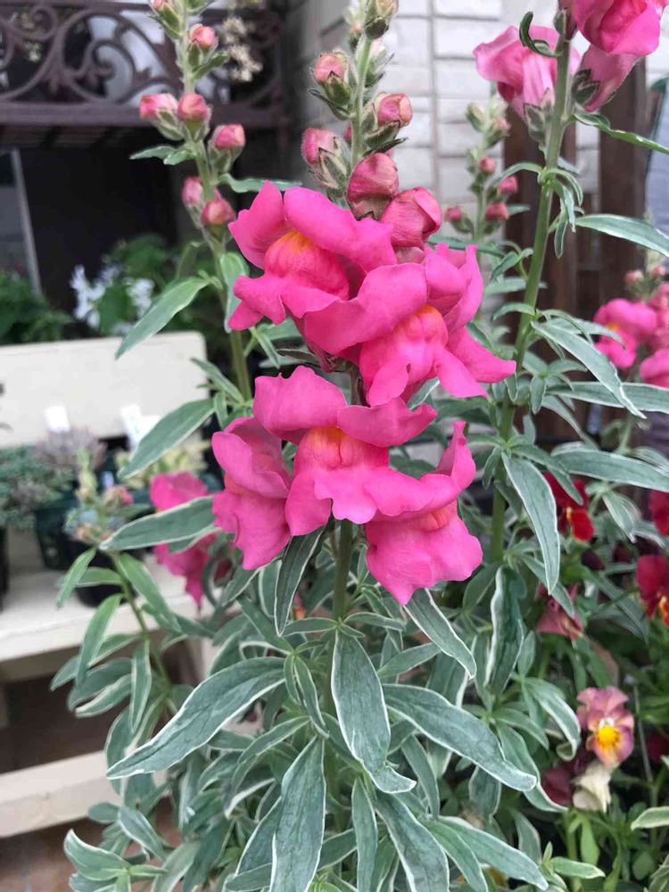 ビオラと寄せ植えしてる斑入り葉の金魚草