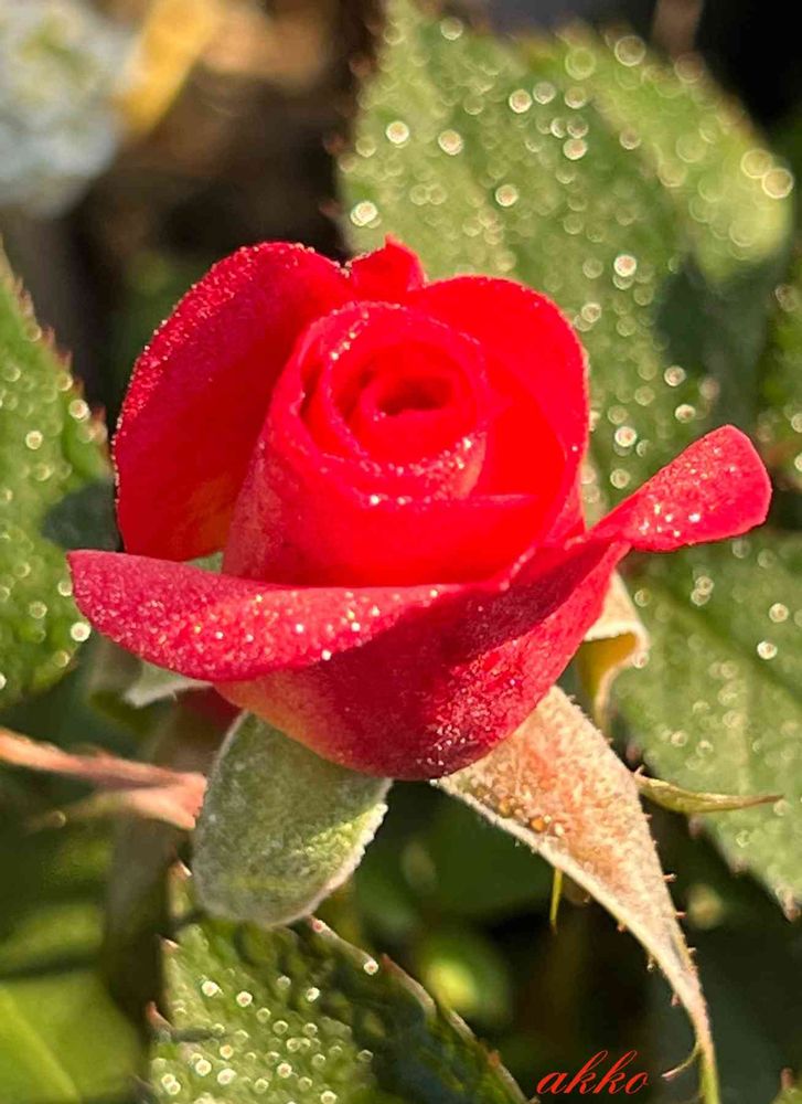 金粉をかけた様に 朝露がキラキラして とても綺麗ですね🌹🥰