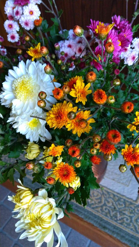 知人から頂いた色とりどりのキク☺️💛🧡🤍💗