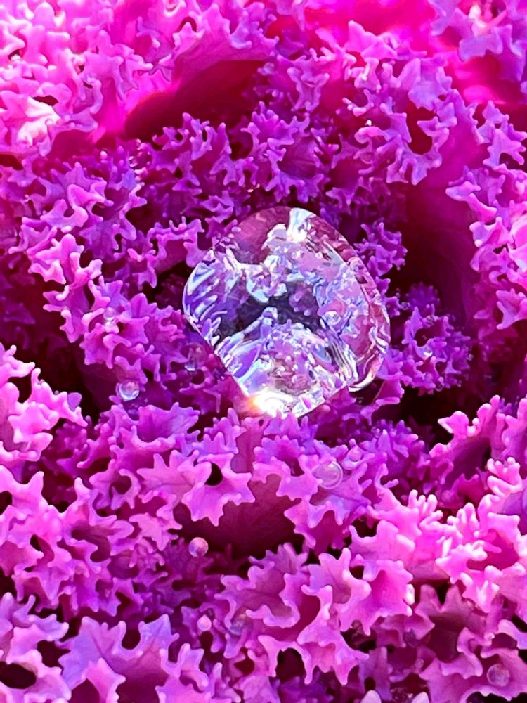 葉牡丹に綺麗な💧輝いて美しいです😊