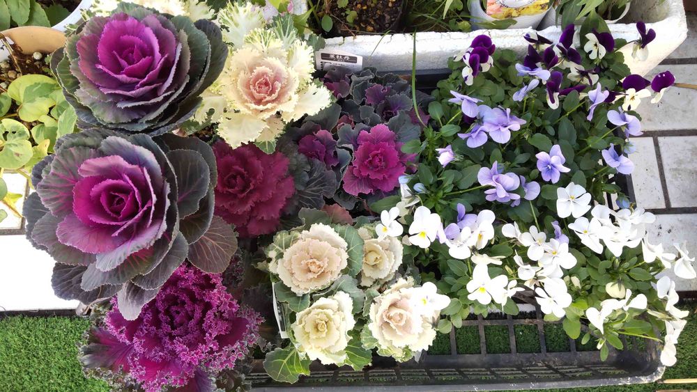 昨日購入した葉牡丹とビオラ💜🤍💗💜☘️