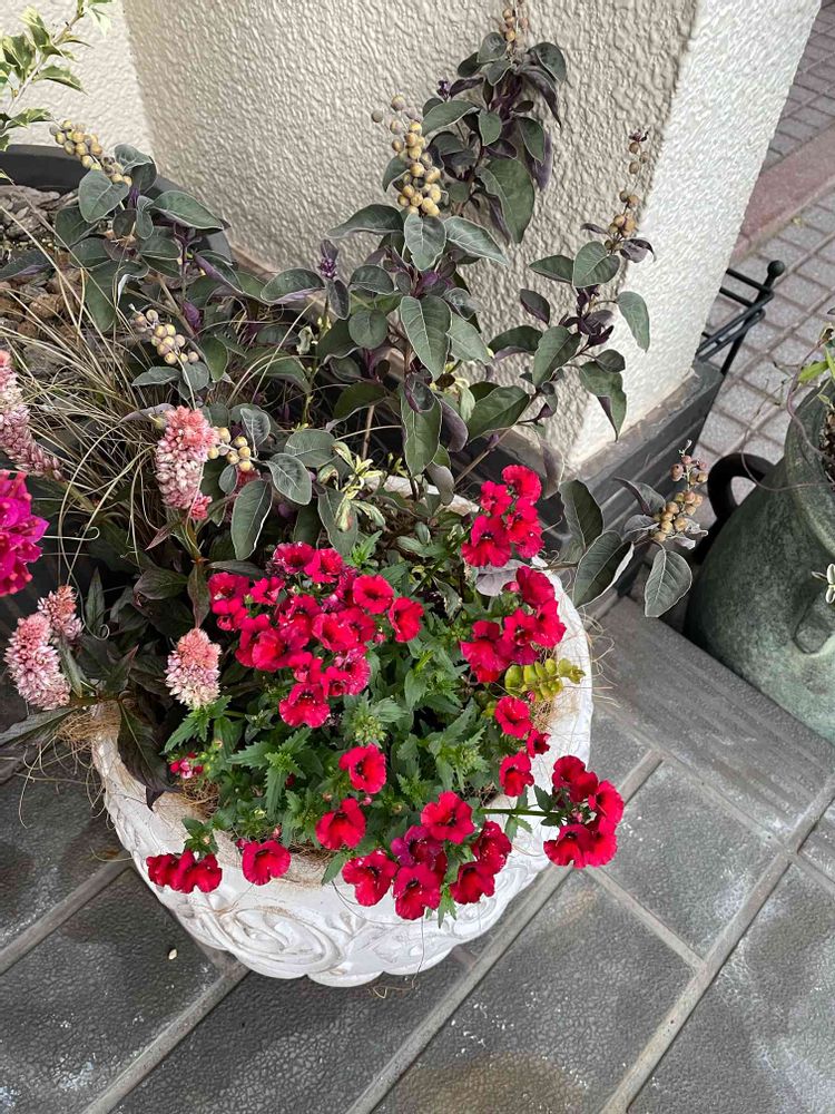 こんにちは〜西洋にんじんぼくの寄植えのネメシアが満開でXmasカラー💕