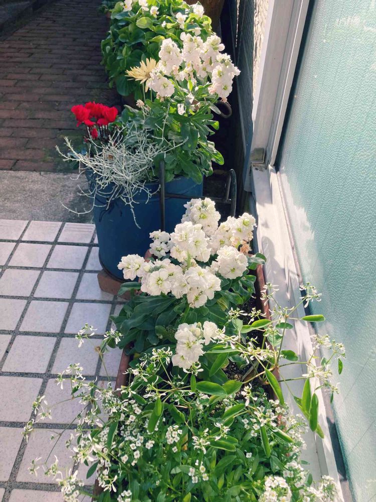 白い色のお花が多いです。ちょっとだけガーデンシクラメンの赤色が❤️今年は、こんな気分かな。
