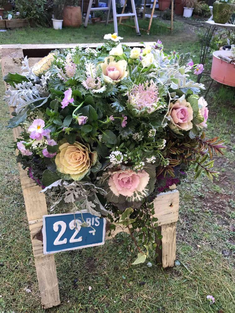 素敵です😻葉牡丹の色や葉も良いですね〜 同じ寄植えでも角度が付くとそれぞれの植物が綺麗に見えます✨鉢植えとは又違って素敵です!