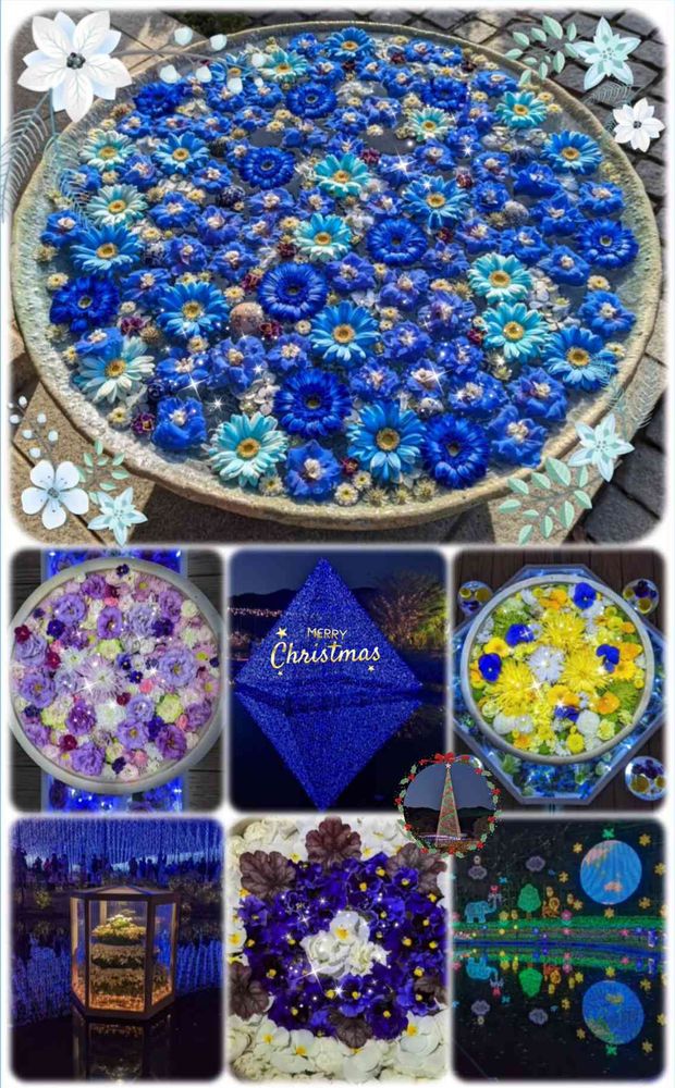 今回UPした行田で見かけた花手水は一番上のものだけで、他のブルー系の花手水はあしかがフラワーパークで見かけたものです