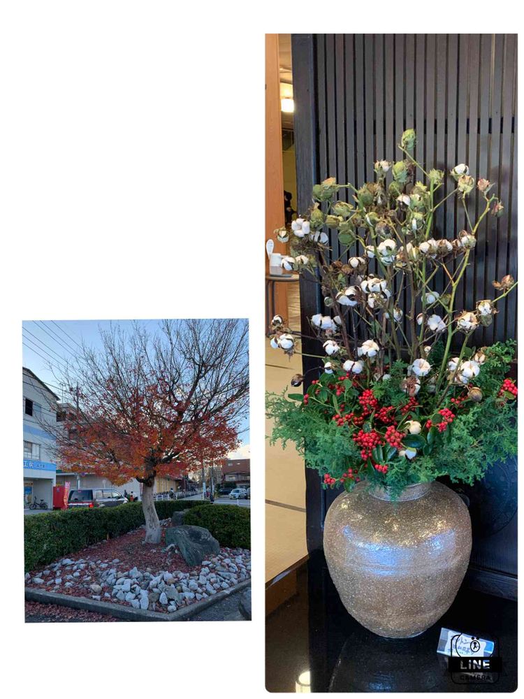 左下は駐車場から出る時まで目に止まらなかった紅葉.綺麗です。