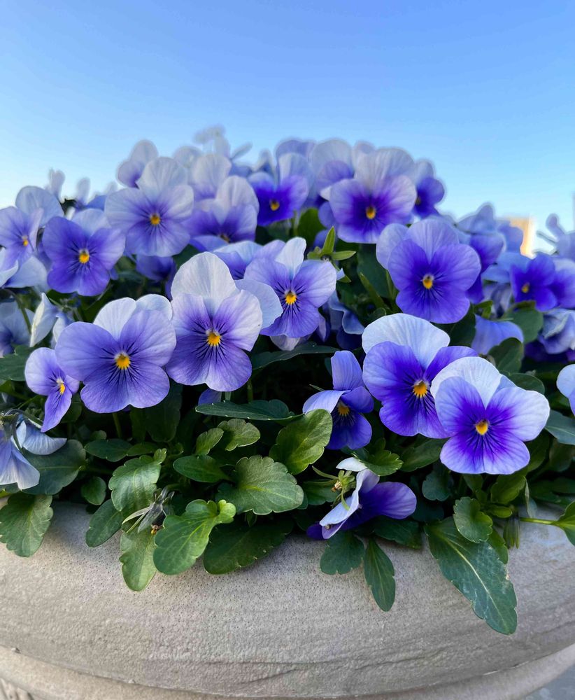 記念にふさわし素敵なビオラ🫐青空を背景に輝いてます🥰