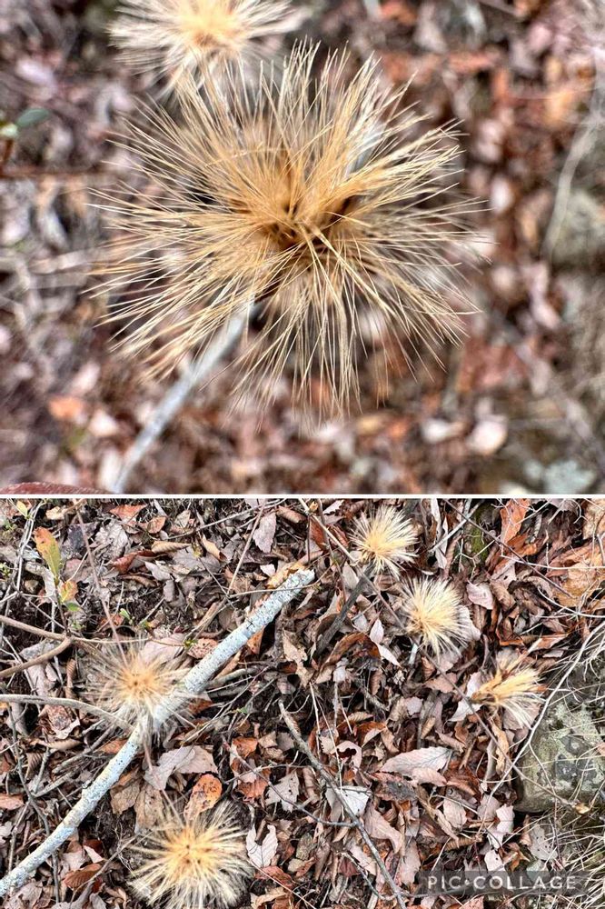 アザミ属やオケラの羽状の冠毛と違って、ピンピンした髪の毛みたいな冠毛を立ててるのはコウヤボウキですね。