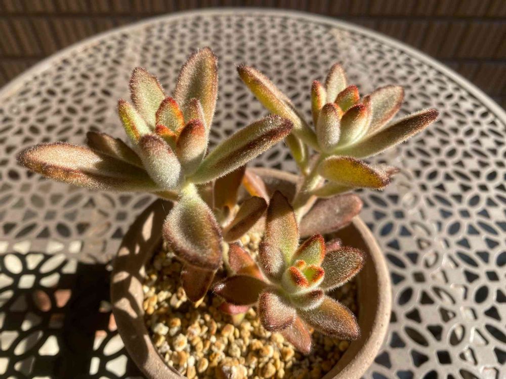 以前は、育て方が分からず、水のやり過ぎで多肉を枯らしてしまう私でしたが、GSでウサ耳を何度か見かけ、育て方を調べた上でこの子を我が家に連れてきました。とりあえず、元気に育っているようです。