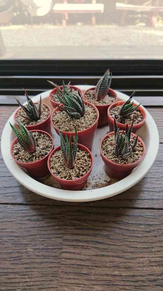 バラしたハオルチアさん達の中から、既に根が出かけている子達をひとまずミニ鉢に植えました。さて、何処に置いておこうか…(´▽`;)ゞ