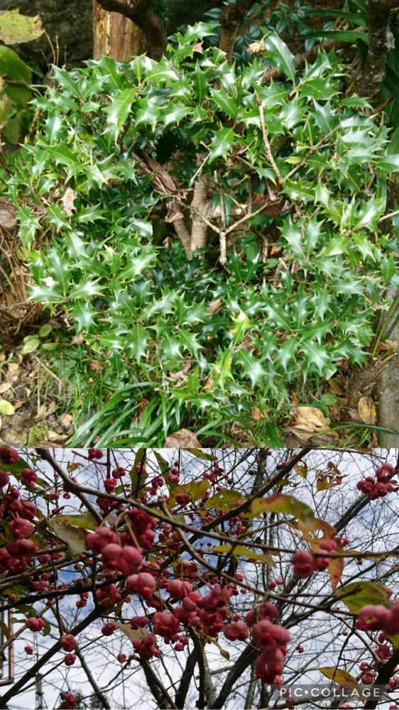 空地で見かけたヒイラギとマユミ❣️