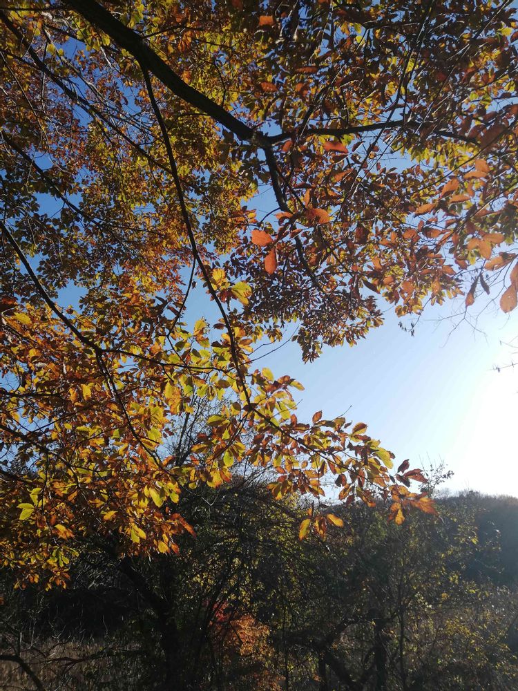 昨日の空と樹木のコラボです…葉っぱが綺麗でした~~枯れ葉散る~晩秋の空。