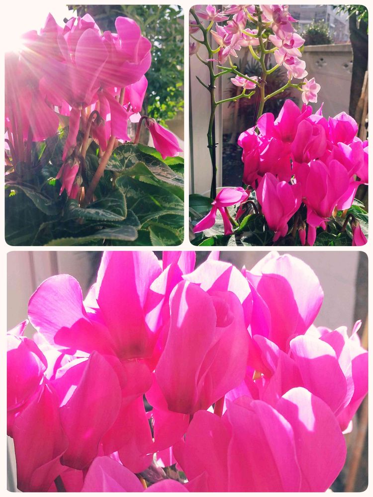 可愛い色のシクラメンと可愛い胡蝶蘭も日光浴です✨✨✨💕