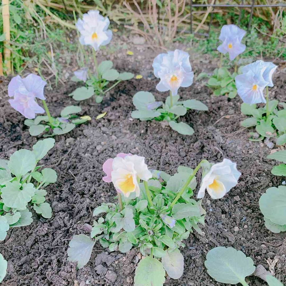 今シーズンは白~ブルーのパンビオだけをたくさん地植えしたくて、花色を厳選して種まきしましたが、自家採取種なのでやっぱりいろいろな色が咲いてます🤣咲いてくれたらどの子も可愛いですけど😍