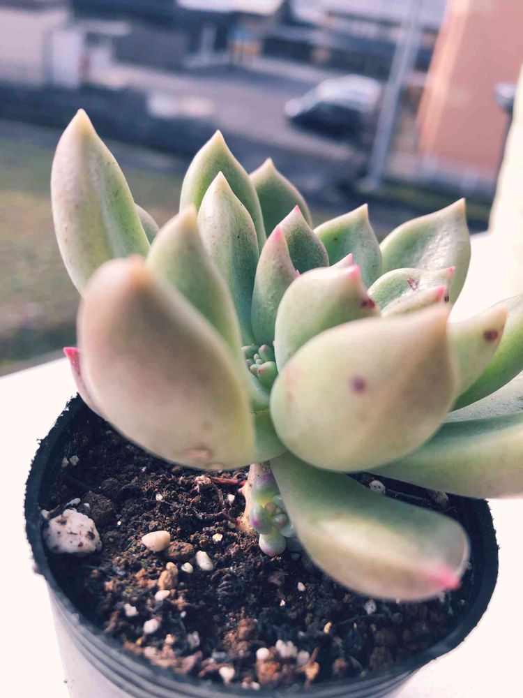 こんにちは。 2022年秋、多肉植物に出合い気ままにベランダで育てています。 家の植物たちの成長の記録として、マイペースに綴っていきます。超照れ屋さんなので、コメントのやりとりはしていません。ごめんなさいね^_^ 最近気付いたのですが、私は葉挿しから育てている子が多いみたいです。 もちろんそうでない子もいるのですが。。。 葉元から、ムニィーっと出て来る姿を見ると愛おしくなります〜🎶 どうやら子育てがしたいみたいです。 花束に憧れているので、出来るだけ沢山の子を育てて盛り盛りにしていきたいです。