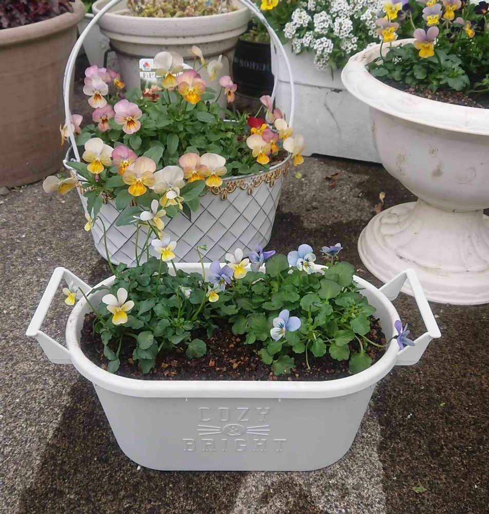 寄せ植えに使ったらいいんだろうけどセンスないのでビオラだけで植え付けました