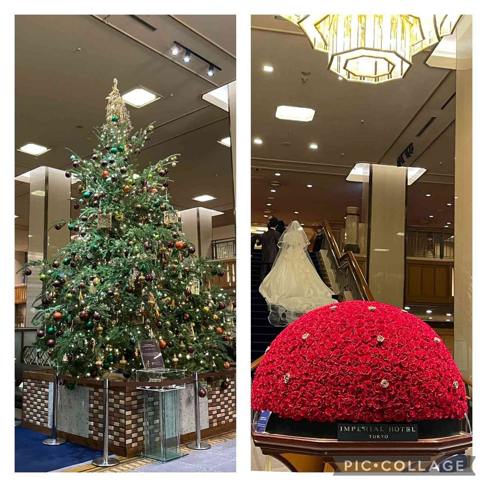 都内ドライブ中に日比谷公園のクリスマスマーケット観に行こうと思ったら行列&予約制でしたのでお向かいの帝国ホテルに入ってみました。美しくHappyな雰囲気に誘われました💓☺️明治村にある昔の帝国ホテル時のギャラリーもあって楽しかったです💓
