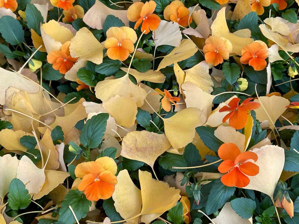 今朝公園を散歩していると花壇にイチョウの落ち葉に包まれたパンジーが顔を出していました🤭🌼🍂