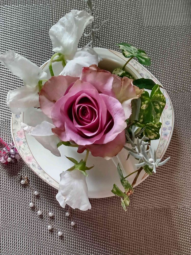 普段マグカップばかりで💦しまいこんでるカップ&ソーサーに活けました😊