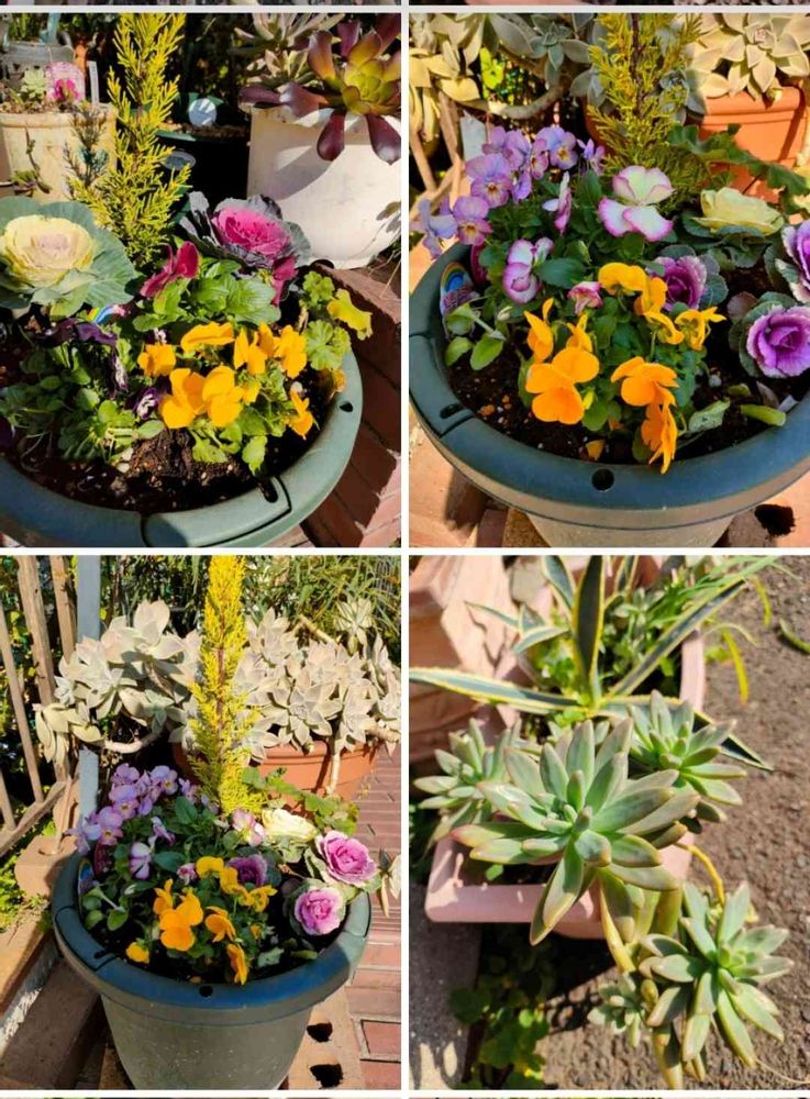 パンジーや葉牡丹などで寄植え作りました。🎄クリスマス🎄お正月来るので、庭が明るくなりました🪴