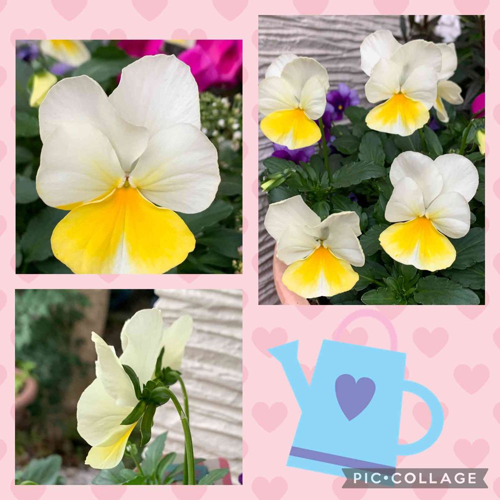 少し前にお迎えして、寄せ植えにしてあるビオラ、ジェリービーンズ🤍💛