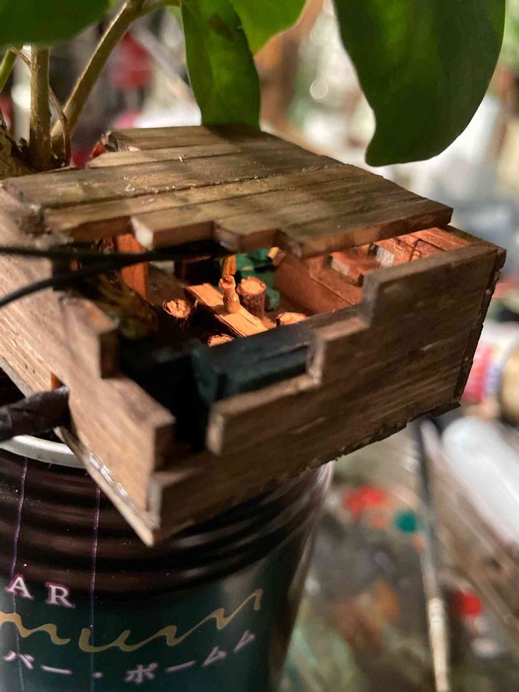 「トムソーヤの冒険」って アニメの影響で、ツリーハウスの虜に。 ハックの家にどんばまり😁 ミニチュアツリーハウス製作してます。 内装凝りすぎて、ややドールハウスに 近いです。