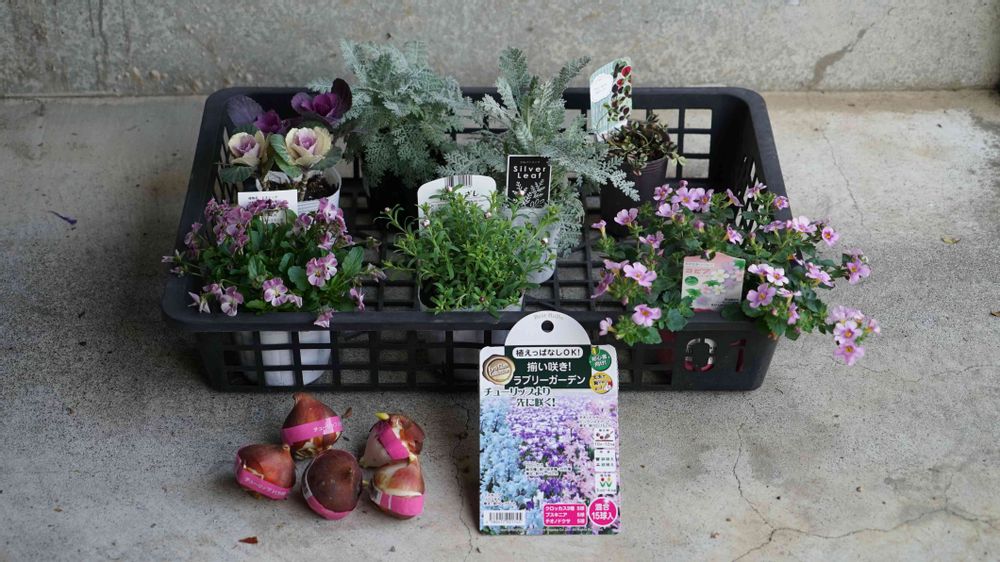 2022年12月11日(日)は初めてのダブルデッカーにチャレンジしました。経験が無いので、ドギマギしながら作業しました。用意した苗と球根達♪