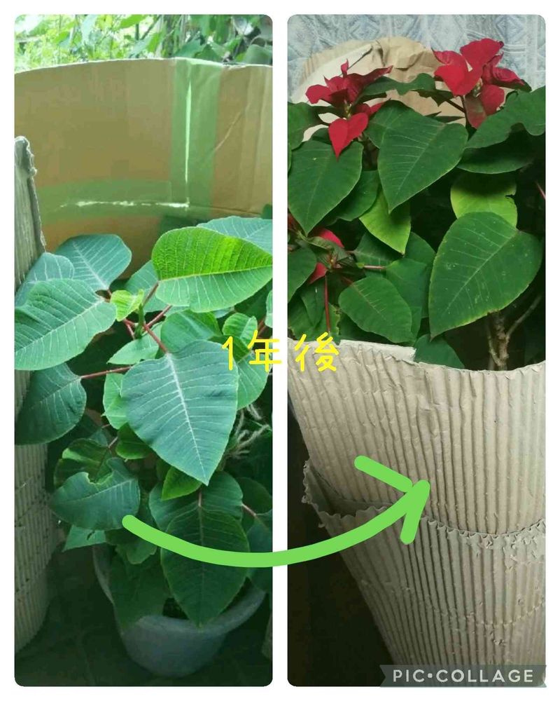 ポインセチアがどんどん大きくなってもうダンボールに入り切らないです。