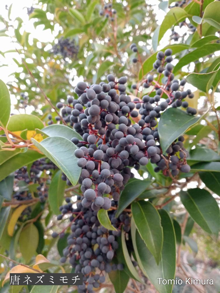 散歩道(京都丹波亀岡 南郷公園)の木立に、黒っぽい実がたわわに、、、