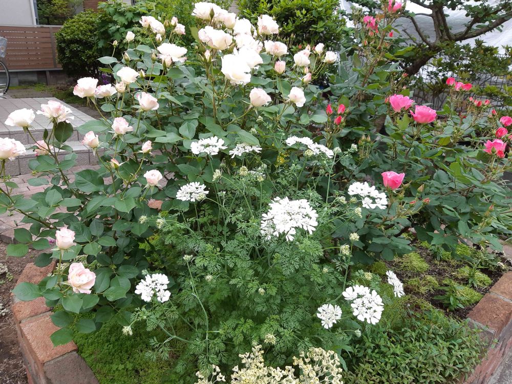 薔薇マチルダとブラッシングノックアウト、足元には大好きなユーフォルビア
