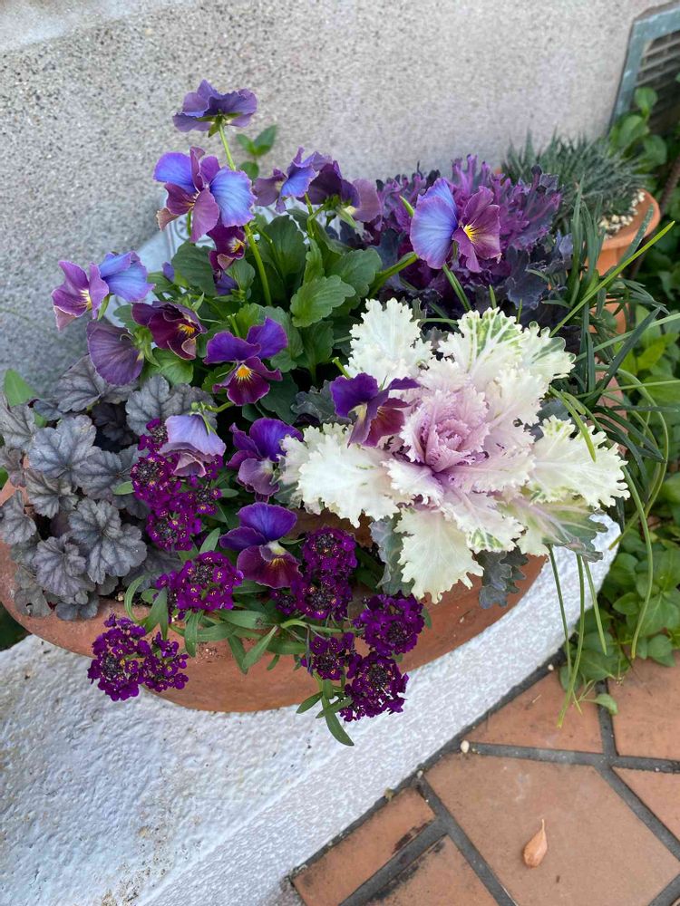 園芸店に行くと、可愛い子がいて、ついつい😊葉牡丹との寄せ植え作りました🙇♀️