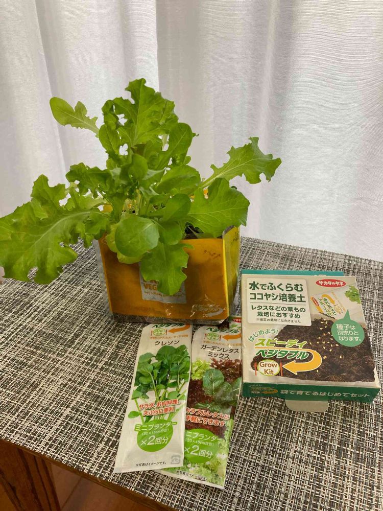 ココヤシ培養土を使って、初の野菜。窓辺でスクスク育ってます。