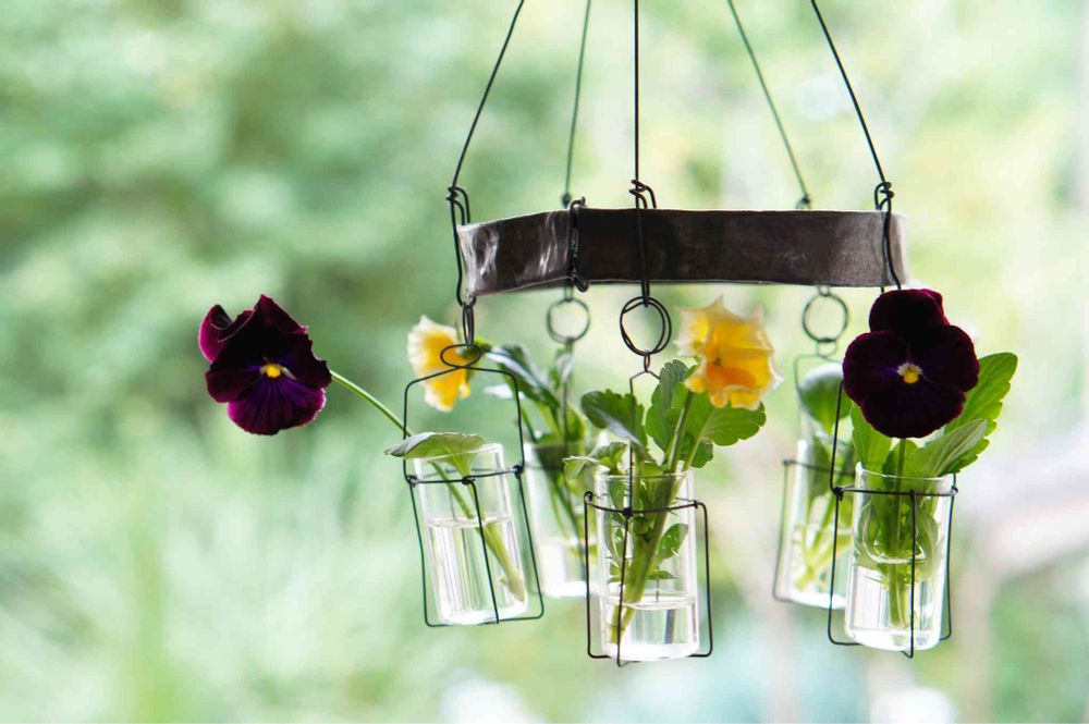 寄せ植えしたパンジーとビオラを摘芯したので、お気に入りの花器に飾りました。