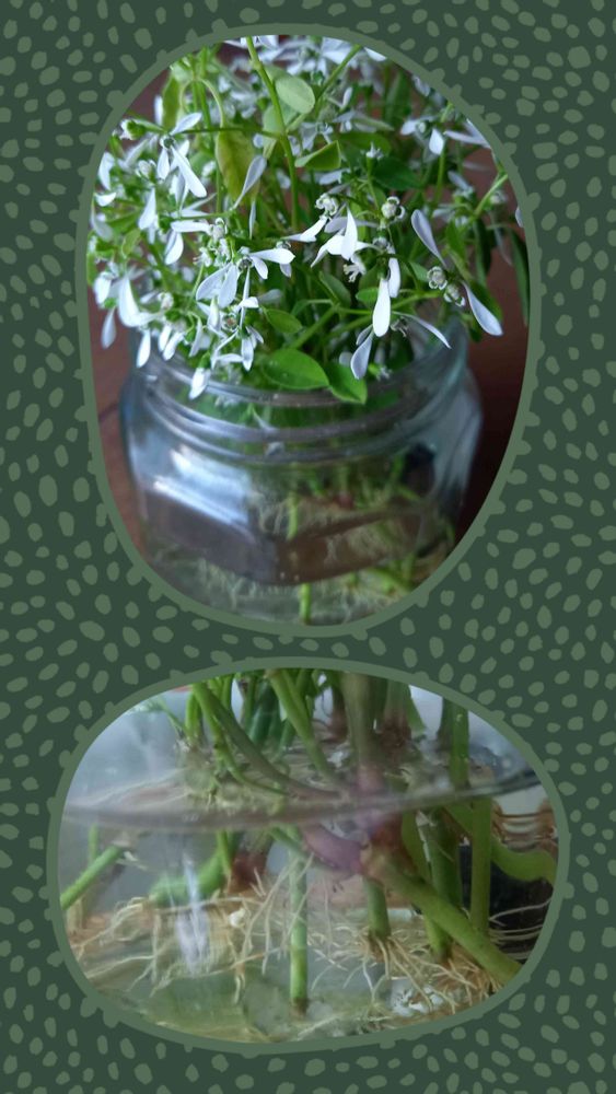 切り戻した枝を瓶にさして陽の当たる室内に置いただけです。生命力が凄い〜❗🤗
