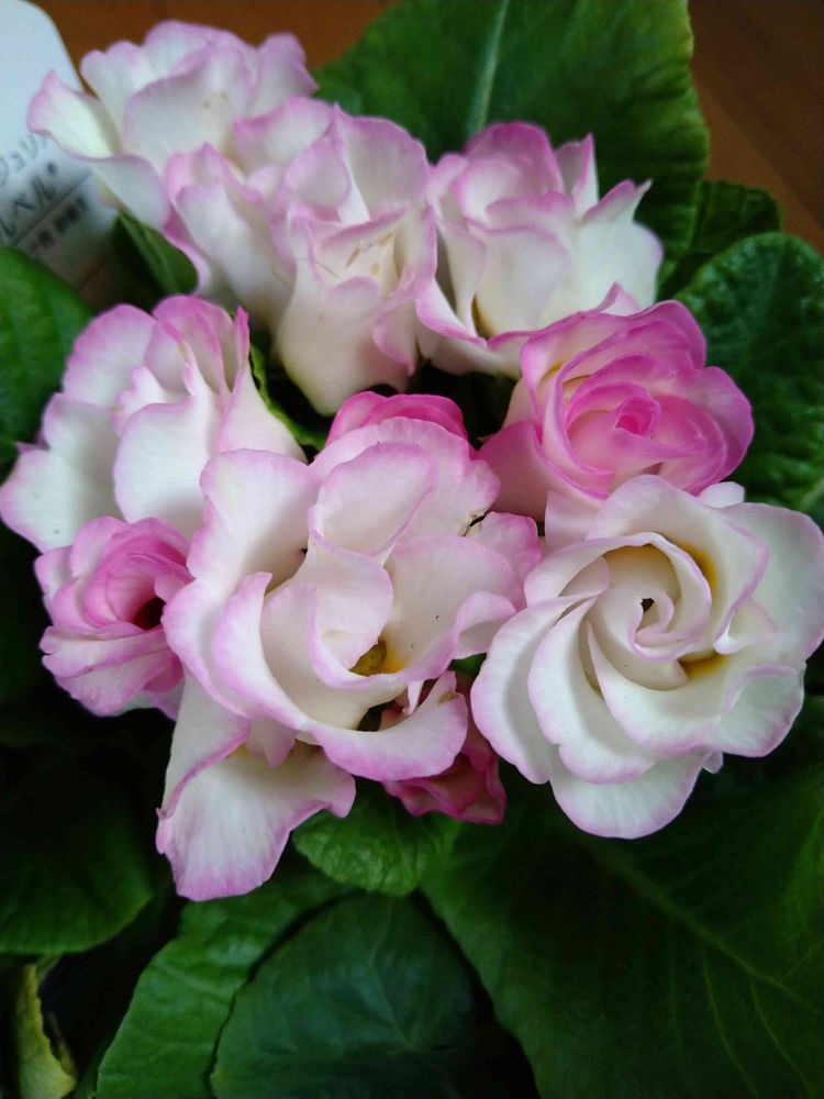 ラベルを速攻無くしてしまい名前を忘れましたが、薔薇咲きのプリムラです。いちごミルクは先に投稿した赤とピンクのプリムラちゃんです❤️