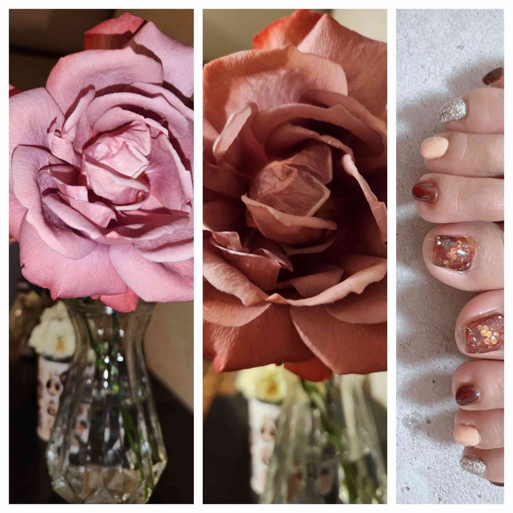 真ん中の薔薇の色とフットネイルカラーが合ってますね😆👍🎵